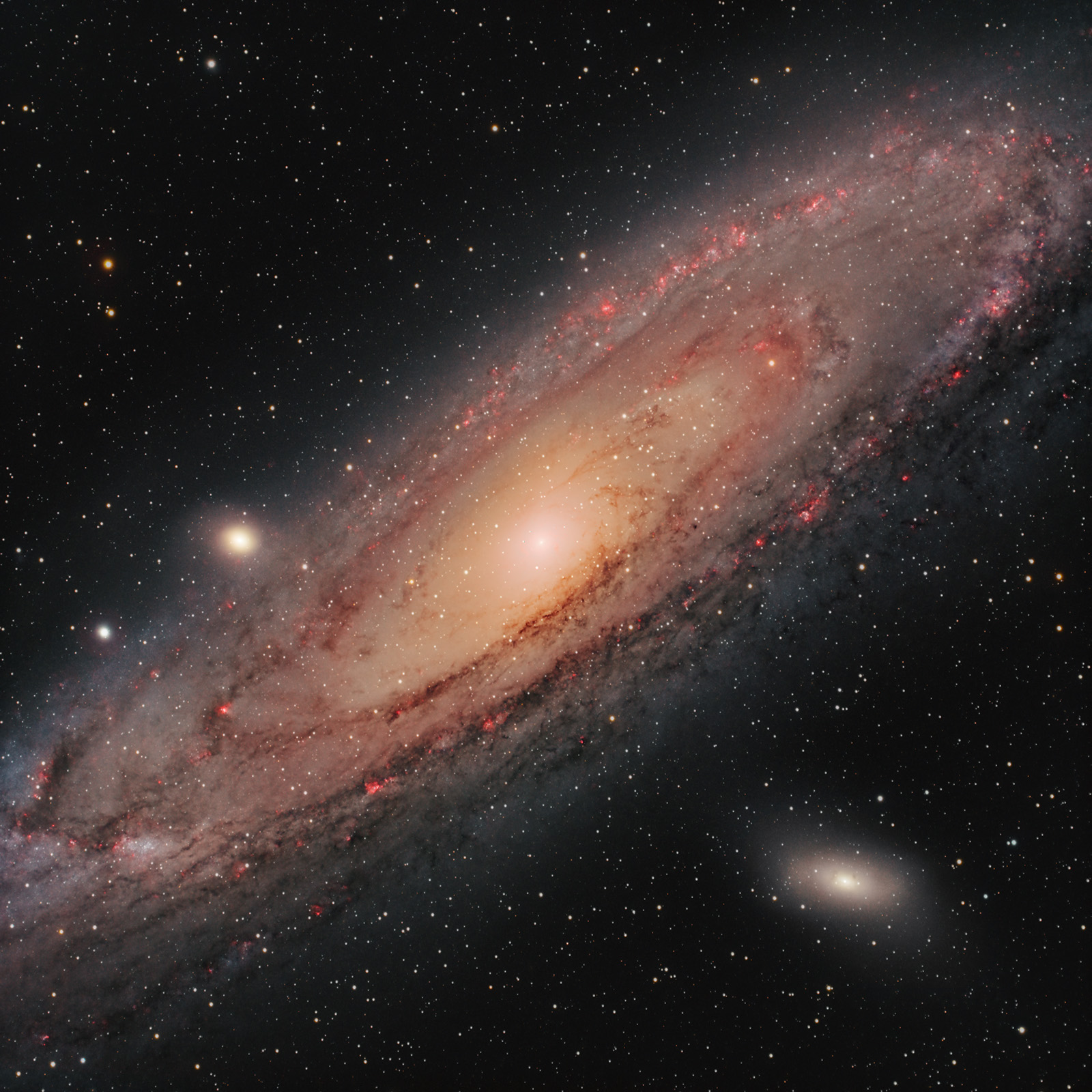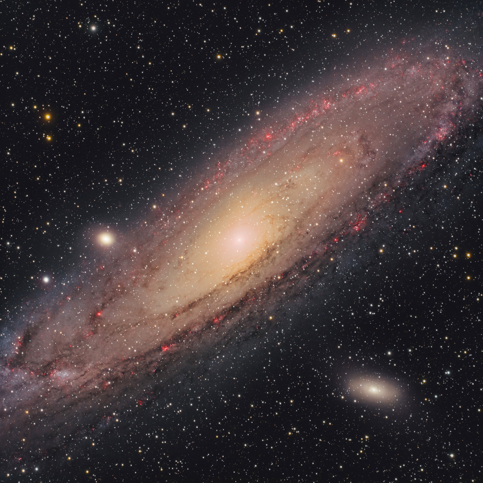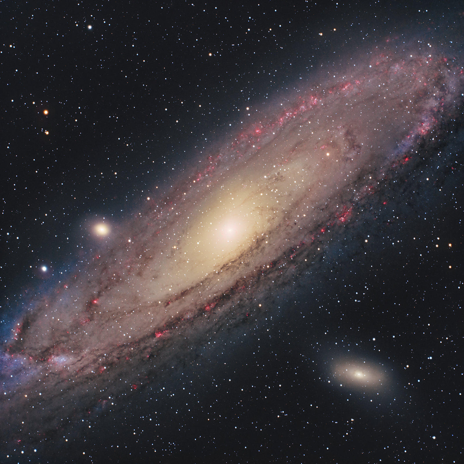 Atracția gravitațională dintre galaxia noastră și Andromeda va face ca acestea să se unească peste aprox. 4.5 miliarde de ani formând o nouă galaxie. Până atunci, ea rămâne unul dintre obiectele cele mai luminoase din catalogul Messier (M31) și o țintă spectaculoasă atât pentru astrofotografii începători cât și pentru cei avansați. Pentru mine Andromeda a reprezentat debutul în domeniul astrofotografiei în iulie 2022 când am fotografiat-o cu un DSLR obișnuit de pe trepied. A fost primul subiect de astrofotografie ...așadar am o atracție specială pentru ea.